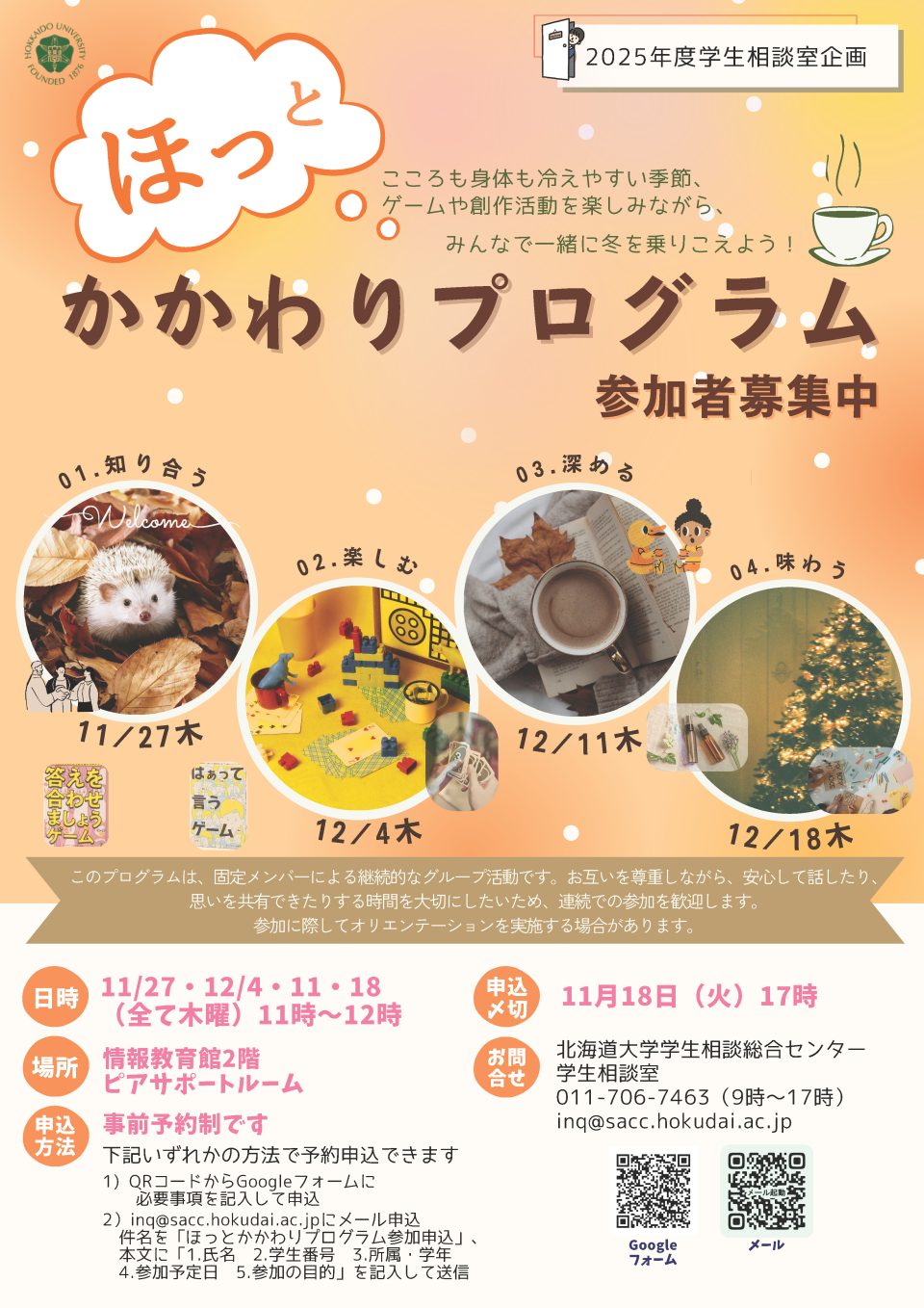 そんな冬の時期に、ぬくもりのあるつながりを感じながら、安心して過ごせる時間を一緒に持ちませんか?