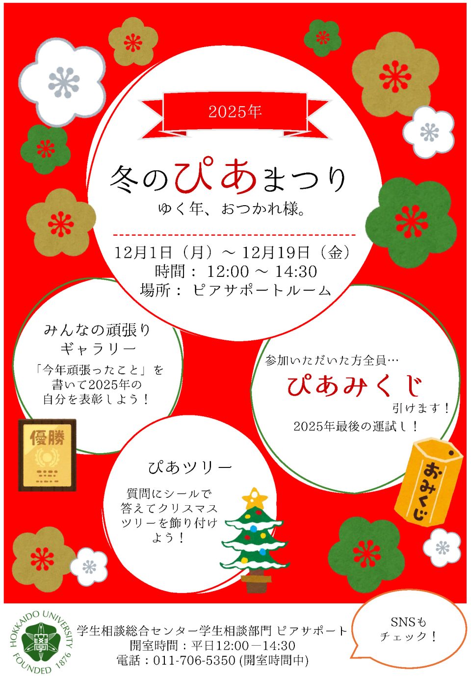 2025年もあと少しですが、ピアサポートルームでは「冬のぴあまつり」を開催します!